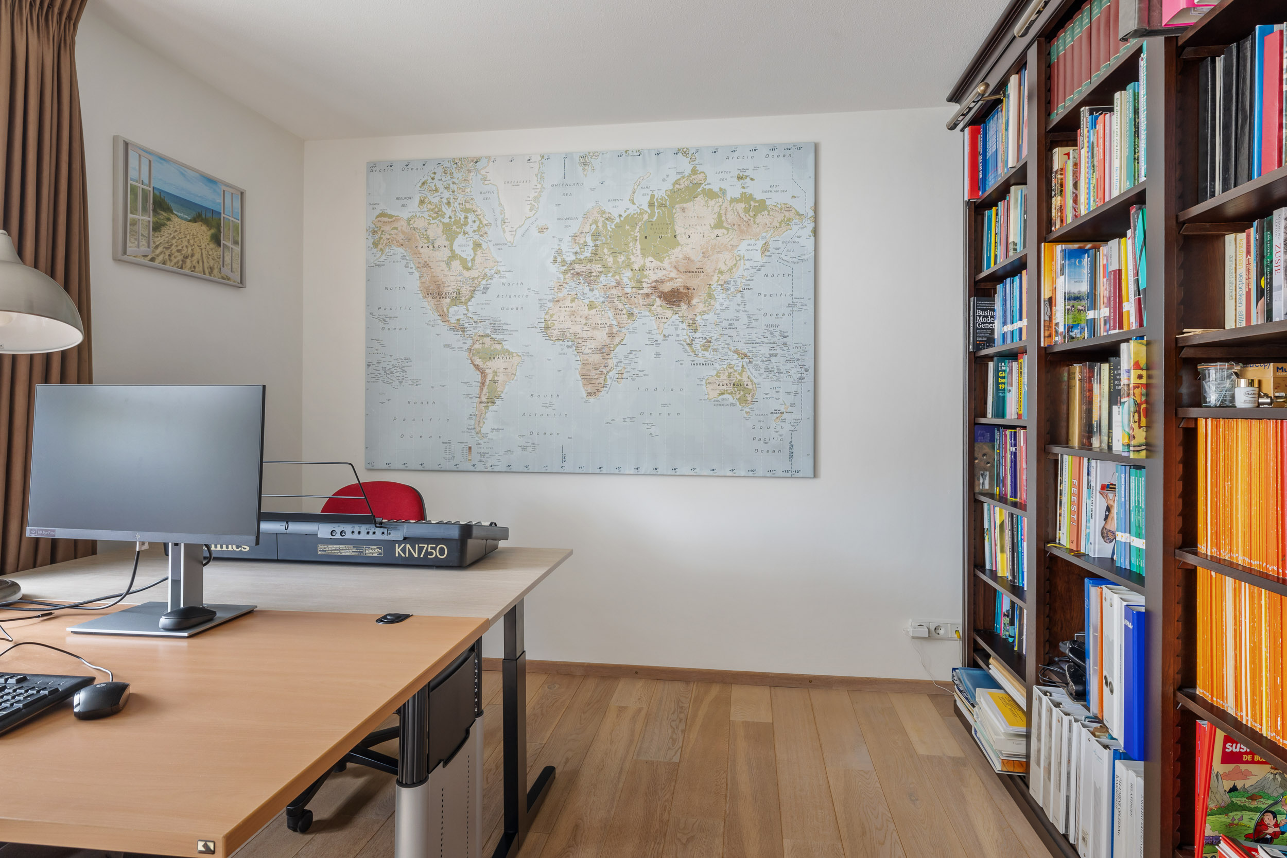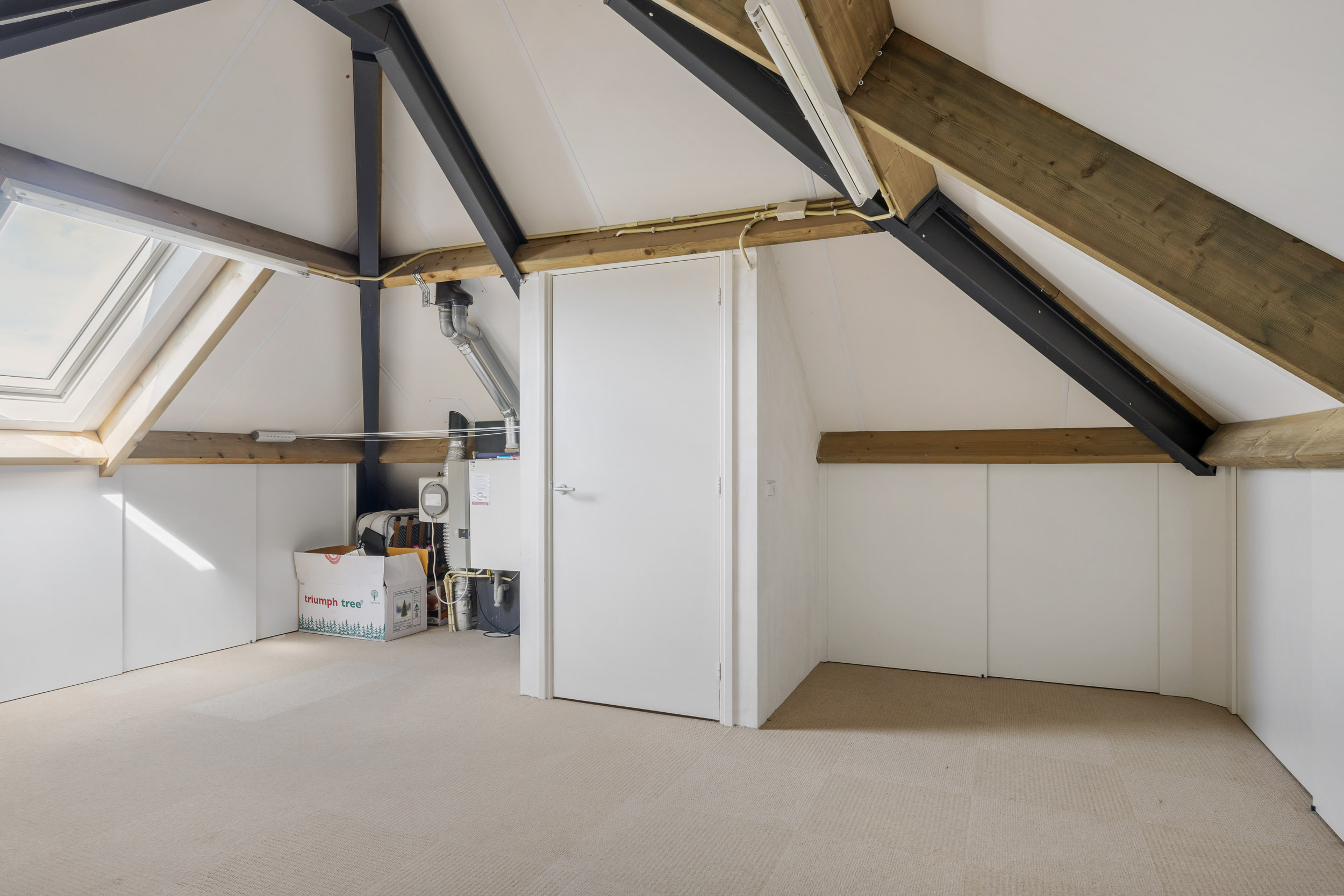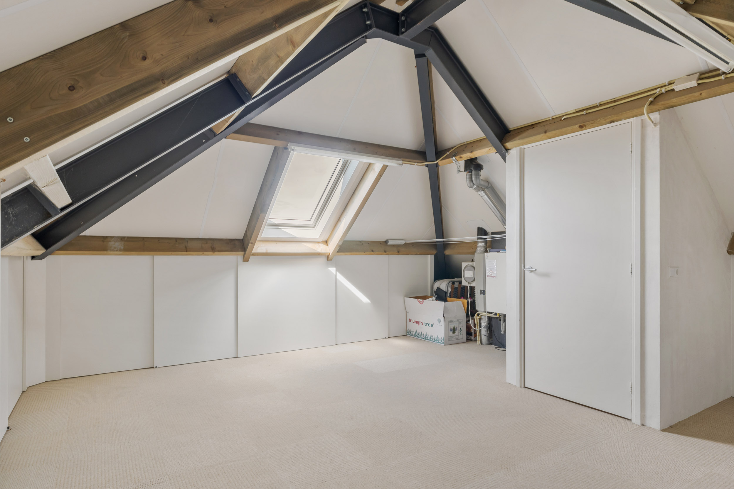 Via een vaste trap bereik je de zolderverdieping. Deze is voorzien van praktische inbouwkasten rondom, een dakraam en biedt de mogelijkheid voor een vierde slaapkamer, werkkamer of logeerkamer. De CV-ketel is hier ook geplaatst.
