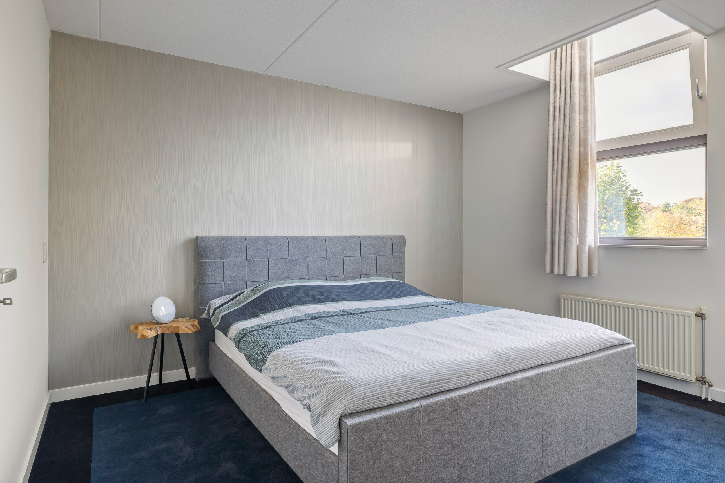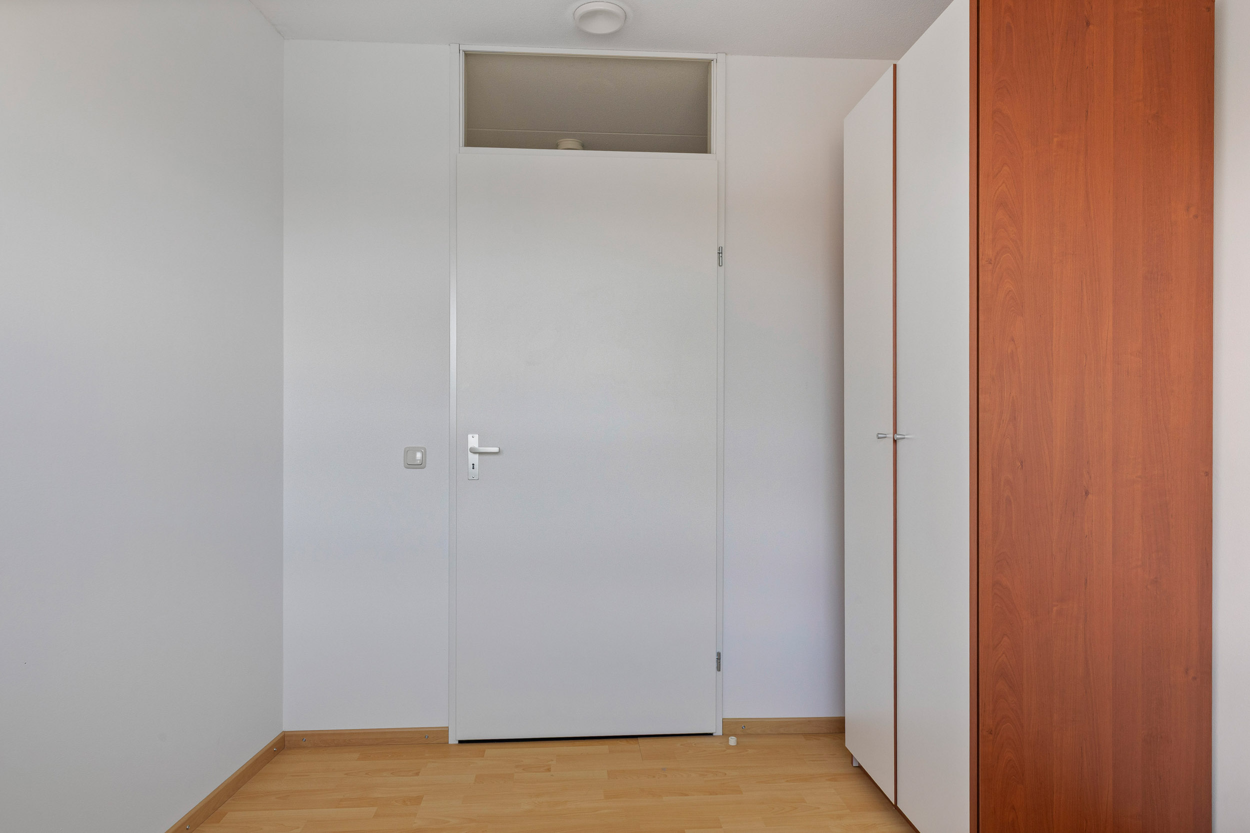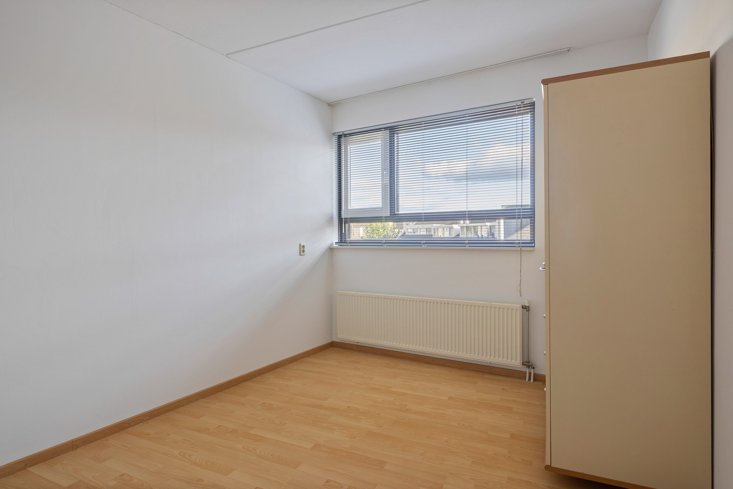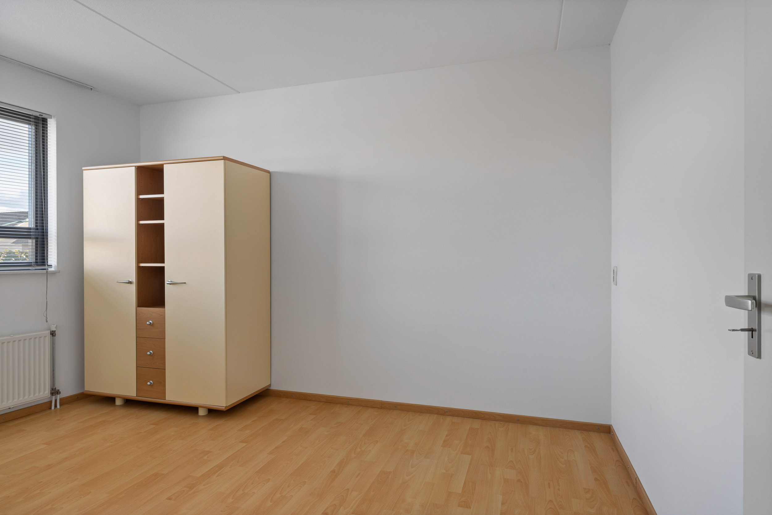 De woonkamer is opvallend licht en ruim, met de open keuken aan de voorzijde en de zithoek aan de achterzijde. De keuken is uitgevoerd in een moderne kleurstelling met grijze kastfronten en een antraciet werkblad. Voorzieningen zijn o.a. een inbouwoven, vaatwasser, 4-pits gasfornuis en afzuigkap. Dankzij de grote raampartijen aan zowel de voor- als achterzijde valt er veel daglicht binnen. Daarnaast ervaar je volop privacy door de geringe inkijk.